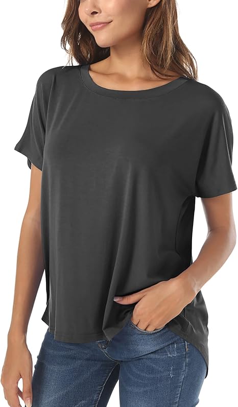 100% Modal, lightweight, super soft and stretchy fabric for comfortable wearing. High-low hem t-shirt. Basic fashion garment. Loose fit makes it comfortable and suitable for all occasions.
