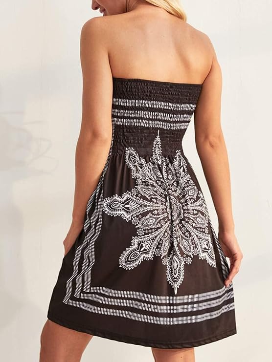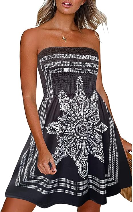 Summer Dresses for Women Beach Cover Ups Strapless Boho Floral Print SundressSummer Dresses for Women Beach Cover Ups Strapless Boho Floral Print Sundress